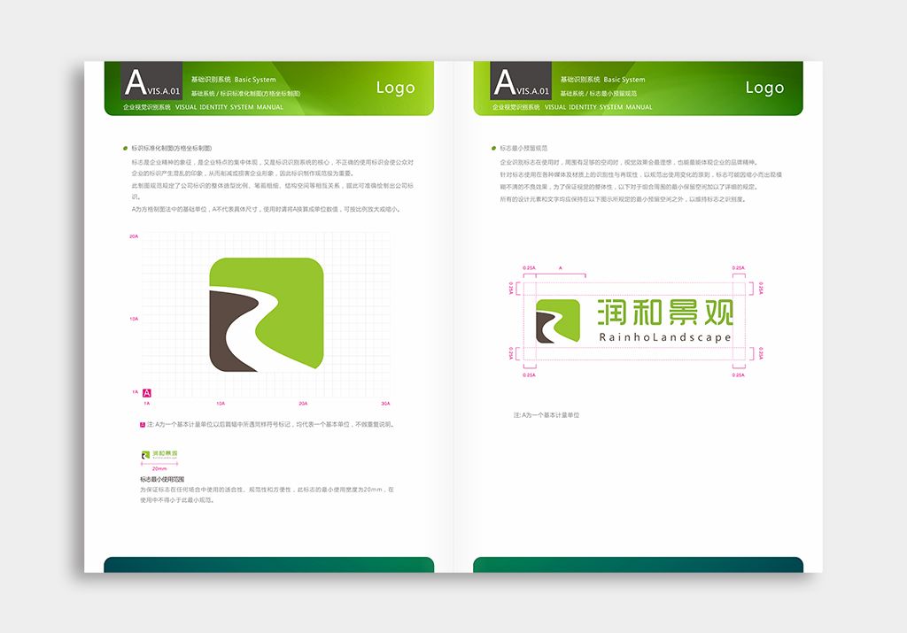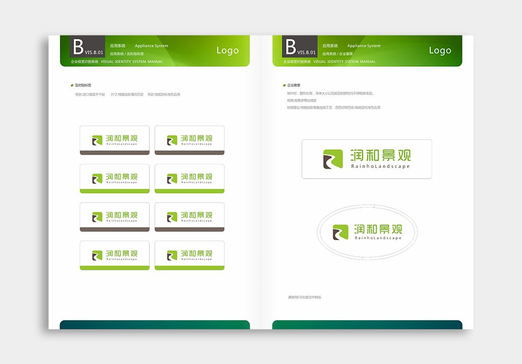 润和景观企业视觉识别系统(VIS),以行业特性和产品特征提炼主要设计元素,针对企业名称和企业发展历程衍生文化要素。结合关联视觉元素设计系统的、统一的视觉符号系统。将识别符号具体化,效果更直接。将企业理念、文化特质、服务内容、企业规范等抽象语意转换为具体符号的概念,塑造出独特的企业形象。视觉识别系统分为基本要素系统和应用要素系统两方面。将企业识别的基本精神充分地体现出来,使企业品牌化,同时推进产品进入市场的形象更专业。
