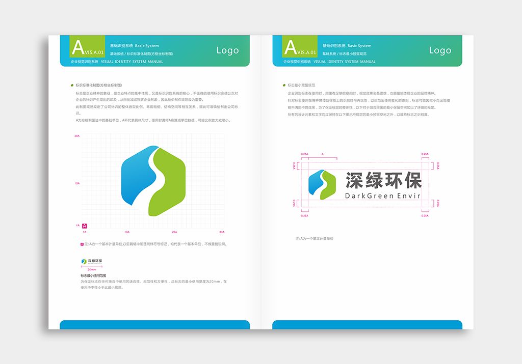 深绿环保企业视觉识别系统(VIS),以行业特性和产品特征提炼主要设计元素,针对企业名称和企业发展历程衍生文化要素。结合关联视觉元素设计系统的、统一的视觉符号系统。将识别符号具体化,效果更直接。将企业理念、文化特质、服务内容、企业规范等抽象语意转换为具体符号的概念,塑造出独特的企业形象。视觉识别系统分为基本要素系统和应用要素系统两方面。将企业识别的基本精神充分地体现出来,使企业品牌化,同时推进产品进入市场的形象更专业。