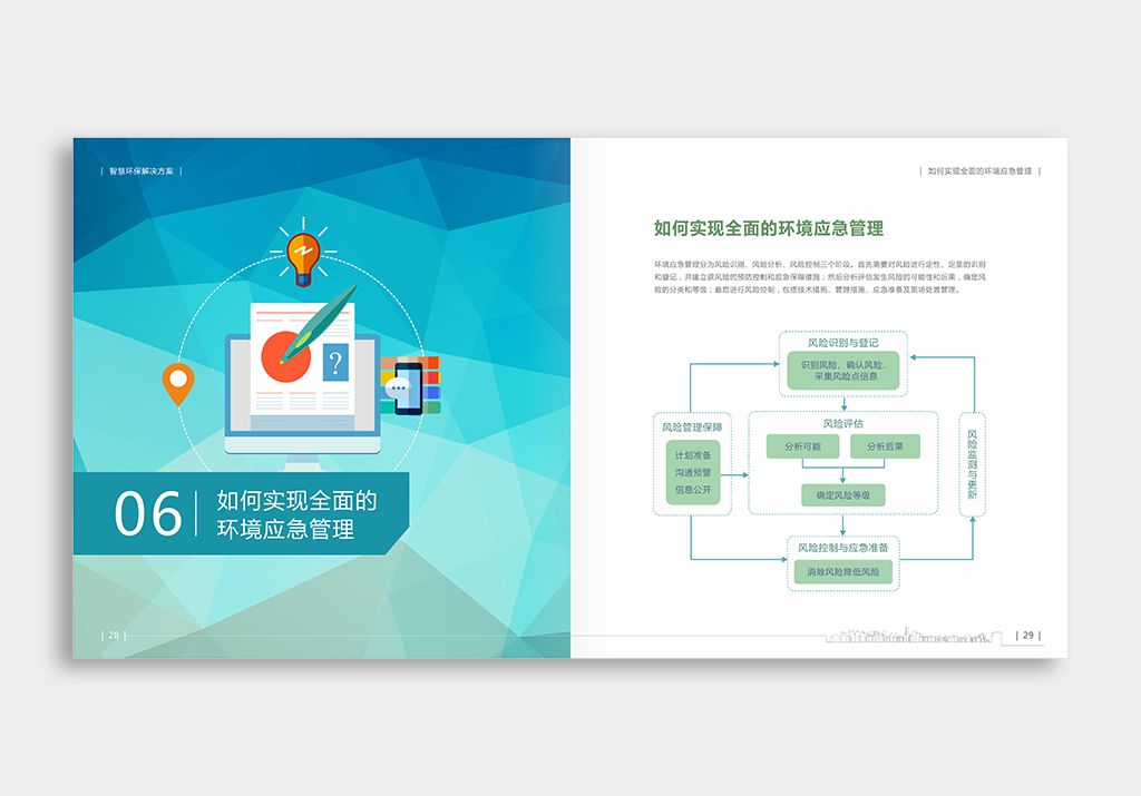 智慧环保项目推广画册,为满足企业及项目推广需要,针对行业需求及自生特点分析,以图形元素为主要切入点,经资深策划师润色,全方位立体的展示自身的理念、品牌、产品形象。根据行业特性开展创意设计,更好的体现文化理念以及品牌故事,加深受众的总体印象。以型吸引人,以宣传的点来明确主题,确定所宣传的故事与文化充满真实性,可靠性。精心策划的主题与素材的结合,画册脉络清晰点,使用目的体现明显。后期印刷制作时精美,具有独特的创意,更吸引受众的注意力。