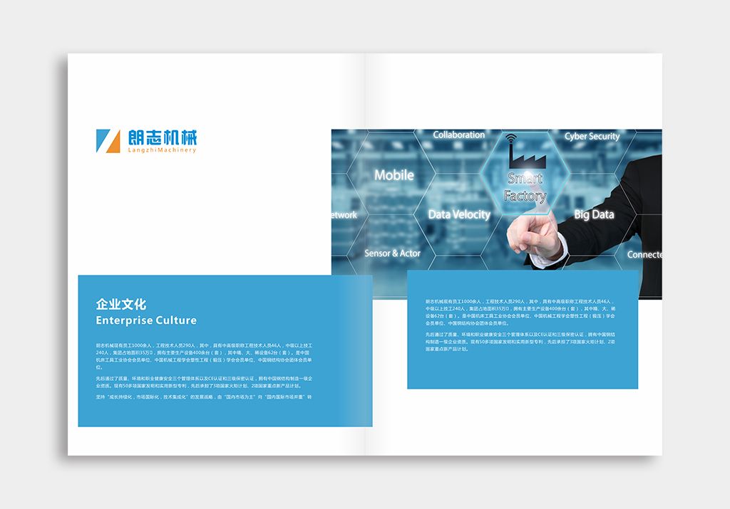 朗志机械企业宣传画册,为满足企业及产品推广需要,针对行业需求及自生特点分析,以图形元素为主要切入点,经资深策划师润色,全方位立体的展示自身的理念、品牌、产品形象。根据行业特性开展创意设计,更好的体现文化理念以及品牌故事,加深受众的总体印象。以型吸引人,以宣传的点来明确主题,确定所宣传的故事与文化充满真实性,可靠性。精心策划的主题与素材的结合,画册脉络清晰点,使用目的体现明显。后期印刷制作时精美,具有独特的创意,更吸引受众的注意力。