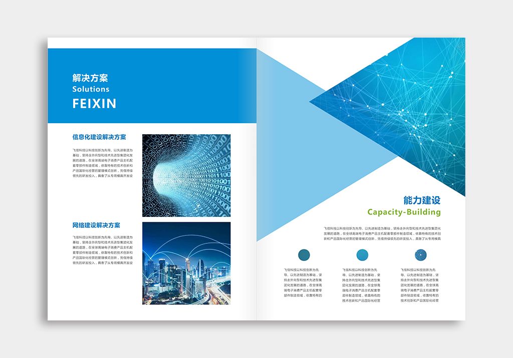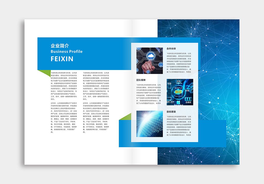 飞信科技企业宣传画册,为满足企业及产品推广需要,针对行业需求及自生特点分析,以图形元素为主要切入点,经资深策划师润色,全方位立体的展示自身的理念、品牌、产品形象。根据行业特性开展创意设计,更好的体现文化理念以及品牌故事,加深受众的总体印象。以型吸引人,以宣传的点来明确主题,确定所宣传的故事与文化充满真实性,可靠性。精心策划的主题与素材的结合,画册脉络清晰点,使用目的体现明显。后期印刷制作时精美,具有独特的创意,更吸引受众的注意力。
