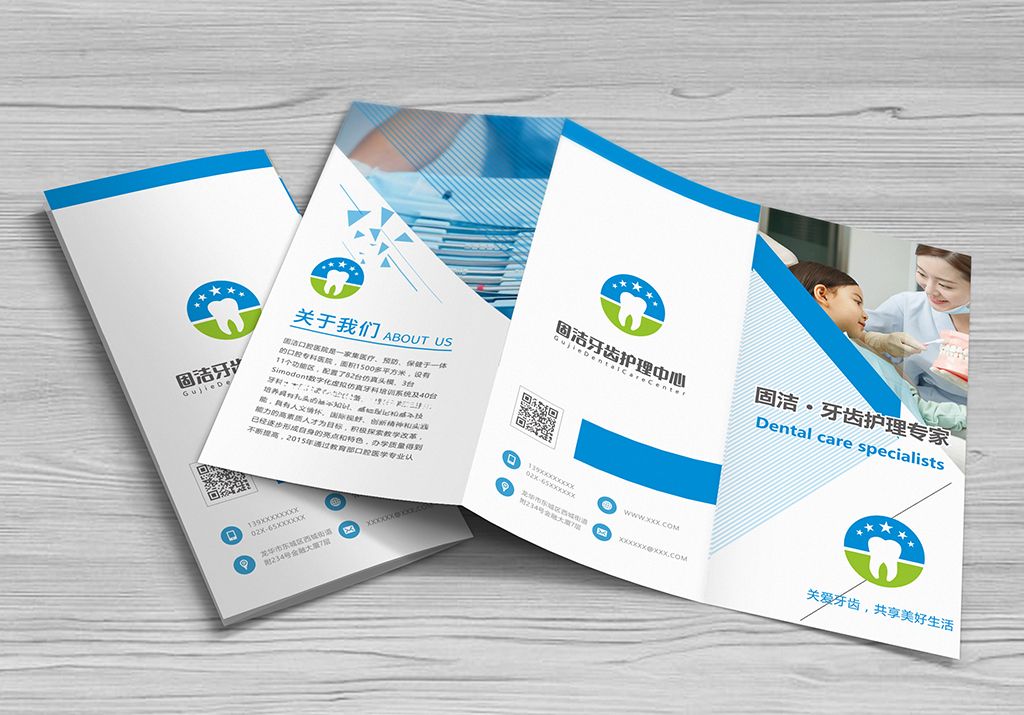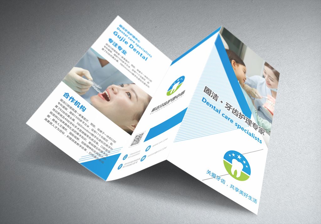 固洁牙齿护理中心活动宣传折页,设计内容充实,便于携带,外观新颖,针对行业需求及自生特点分析,以图形元素为主要切入点,经资深策划师润色,全方位立体展示自身的理念、品牌、产品形象。设计主题重点突出,视觉效果凸显。信息传达清晰明确,充分利用现代印刷技术所印制的影像逼真、色彩鲜明的产品来吸引受众。内容表现充分,设计创意新颖,色彩对比鲜明,文化内涵延伸充分,在活动和宣传中所需要表达目标明确深刻。后期印刷制作精美,具有独特的创意,更吸引受众注意力。