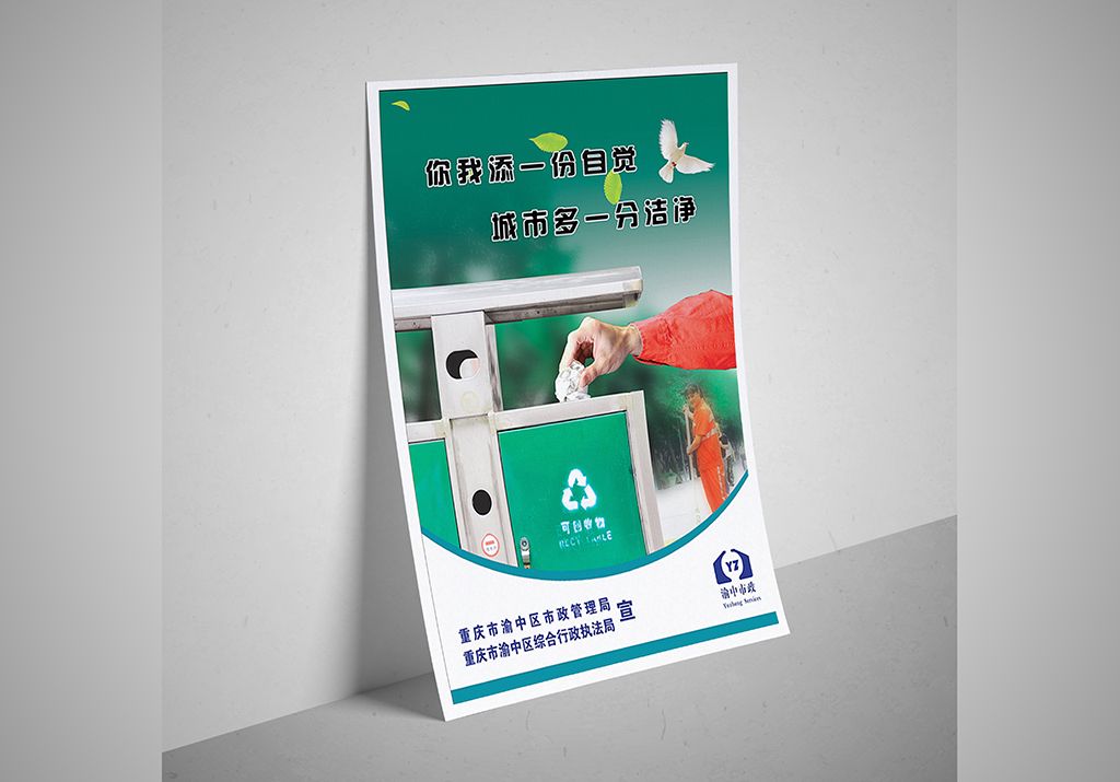 渝中区市政公益宣传海报,通过形象的表现技巧,在广告作品中塑造出艺术形象吸引受众接受宣传的主题,设计主题重点突出,视觉效果凸显。信息传达清晰明确,充分利用现代的印刷技术所印制的影像逼真、色彩鲜明的产品来吸引受众。通过语言生动、表述清楚的广告文案有效的传达信息,海报造型与色彩和谐,效果协调统一。内容表现充分,设计创意新颖,色彩对比鲜明,文化内涵延伸充分,给受众留以丰富的想象空间,在活动和宣传中所需要表达的目标明确深刻。