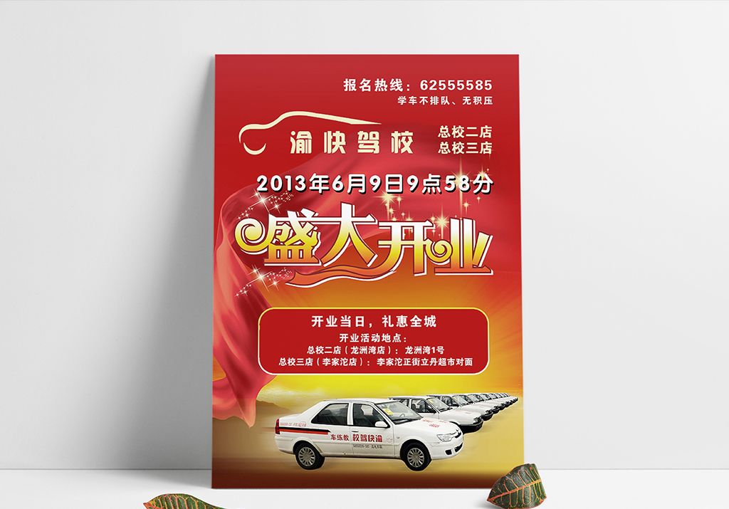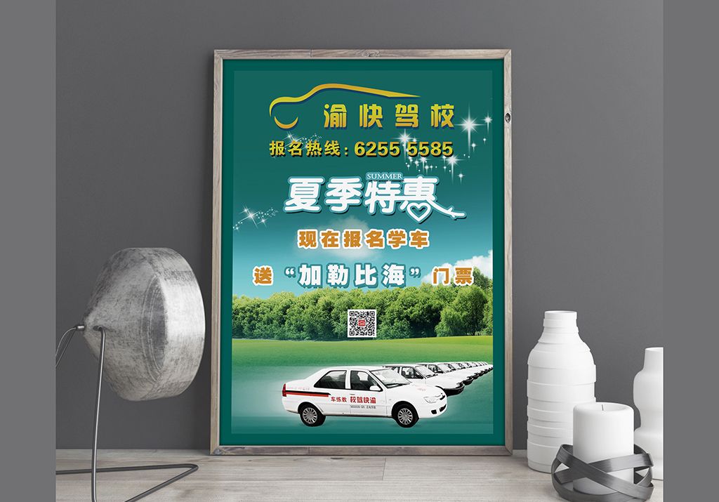 渝快驾校活动宣传海报,通过形象的表现技巧,在广告作品中塑造出艺术形象吸引受众接受宣传的主题,设计主题重点突出,视觉效果凸显。信息传达清晰明确,充分利用现代的印刷技术所印制的影像逼真、色彩鲜明的产品来吸引受众。通过语言生动、表述清楚的广告文案有效的传达信息,海报造型与色彩和谐,效果协调统一。内容表现充分,设计创意新颖,色彩对比鲜明,文化内涵延伸充分,给受众留以丰富的想象空间,在活动和宣传中所需要表达的目标明确深刻。
