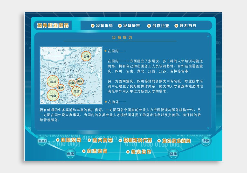 采用图形视觉、音视频非线性编辑、动画制作技术等对各企业、展厅、机构所需展示的的文本,图形、图像、声音、动画视频等多种信息综合处理、建立逻辑关系和人机交互作用。对各种媒体信息集成,通过友好的人机交互界面来操纵信息的处理和显示。为用户提供了视觉,听觉和触觉等多种交互,用户可以按照自己的阅读方式去接受信息,充分发挥主动性。并结合如云计算技术、物联网技术、LBS、虚拟现实技术和大数据等新技术应用,将信息转化成为受众易于接受和表现新颖的视听盛宴。